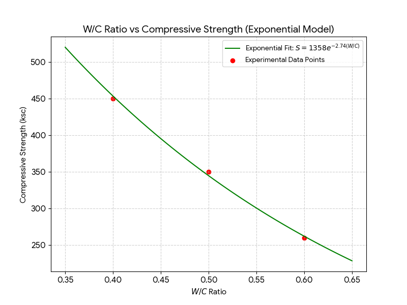 1. Strength vs W/C Curve (กราฟความสัมพันธ์ระหว่างกำลังอัดกับอัตราส่วนน้ำต่อซีเมนต์)